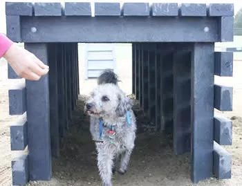 PAWS4PLAY have developed a range of equipment designed specifically for the public dog park. This equipment has been designed with specialists in animal behaviour research, management and education. The dog agility equipment is made by IR using profiles from the Envire splinter-free patented composite recycled plastic range . This ensures a long and weather resistant life for dogs and their owners to enjoy.