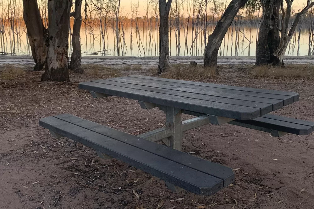 Parks Victoria have been upgrading the camping facilities and walking paths at Lake Mournpall and surrounds. Several years ago Parks Vic approach us to produce park furniture that can endure the tough Mallee district climate. At Lake Mournpall Parks Vic have installed the Envire Wentworth picnic setting and also bollards for the pathways.